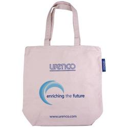 340gsm 100% Natural Cotton Bag. Size: 36x37cms - 11cms gusset - handle size: 2.5x47cms. Printed on both sides with the URENCO logo, URENCO swirl, strapline "enriching the future" and the URENCO web address at the bottom of the bag.
